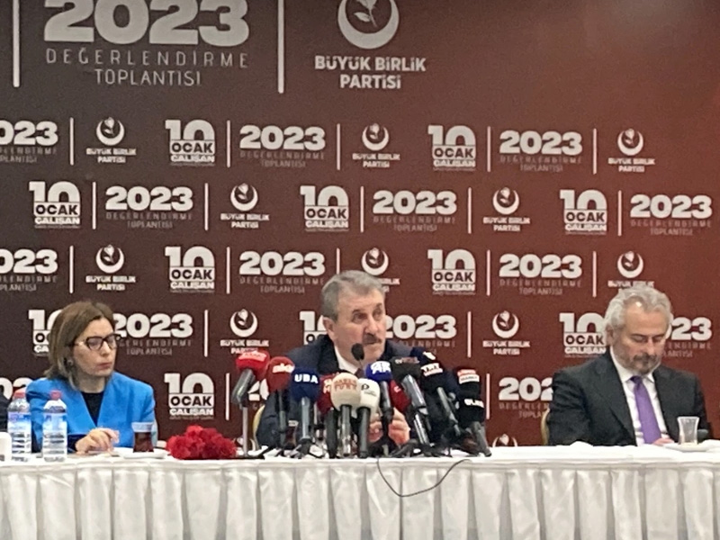 apılan toplantı vesilesi ile 2023 yılının değerlendirmesini yapan Büyük Birlik Partisi Genel Başkanı Mustafa Destici, 6 Şubat Kahramanmaraş merkezli depremde hayatını kaybedenlere rahmet dileklerinde bulundu. Depremde yaralanan kişilere şifa niyetlerini vurgulayan Destici, “Onlar zor bir yaşam mücadelesi veriyorlar. Evini barkını kaybedenler var. Ama şu da bir gerçek ki devletimiz, hükümetimiz bütün imkanları ile ilk günden itibaren hepimiz sahada olduk ve yaraları hep beraber sarma gayretinde olduk. Zaten milletimiz de özellikle deprem bölgesinde yaşayan vatandaşlarımız da bunun idrakinde. Karalama kampanyalarına ya da yıkıcı muhalefet prim vermediler ve seçimlerde gördük ki, depremi yaşamış vatandaşlarımız tercihlerini Cumhur İttifakı lehinde kullandılar. Bu da hizmet siyasetinin, orada da açık bir şekilde başarıya ulaştığını gösterdi” dedi.