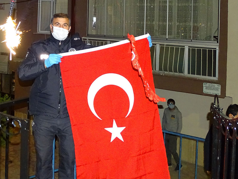 Komşularından polis memuruna meşaleli sü ...